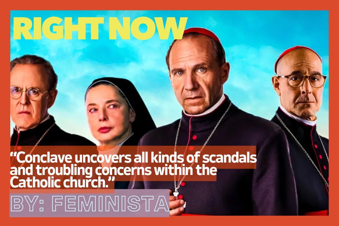 The 2025 Golden Globe winner for Best Screenplay, Conclave is one of the year's most important films. When it came out in theatres, I admit I wasn’t as interested but I watched it shortly after it was released on Amazon Prime, and I’m glad I did. It’s a suspenseful thriller about the few short days a conclave of Catholic cardinals meet to select a new Pope after the incumbent dies of a heart attack. As they investigate each candidate, they uncover all kinds of scandals and troubling concerns that reflect larger issues within the Catholic church. It is a controversial topic, but I think the film handles it with the care and integrity it deserves. There are spoilers, so stop reading now if you want to watch it first.
