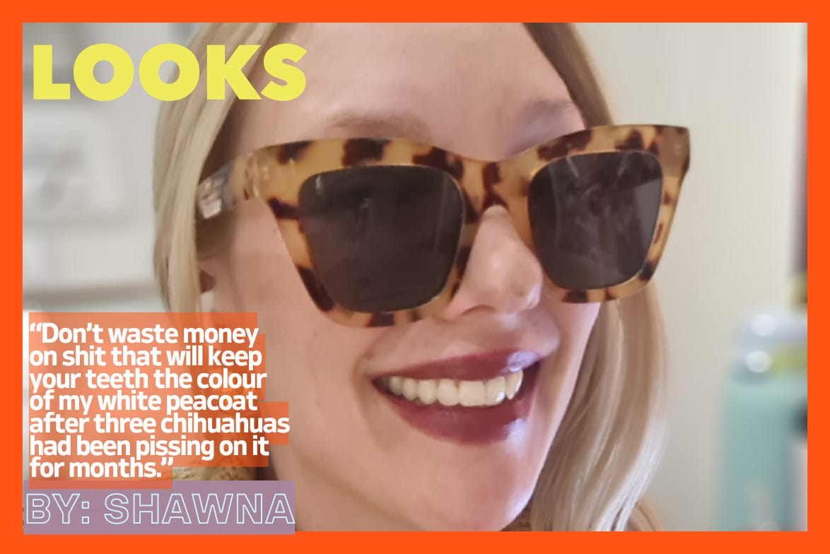 I really look forward to seeing your reactions to Shawna’s story in the comments and I want to hear about your own taste in teeth - maybe some of you prefer a yellow tooth? I'll be there with you talking about my own teeth-whitening escapades, including the one thing I did to absolutely destroy my teeth that I never want any of you to do. I know I sound like one of those Instagram ads with a really gruesome picture of mangled teeth saying, Don't Do This At Home or something. But it's true and it is a common practice and something you are probably doing right now. I had never heard anywhere that it can destroy your teeth until it destroyed mine and my dentist then confirmed that it is a big no no. If that isn't enough enticement to get into the comments… well I hope it is is my point. Let's all meet up there! (I’ve activated the free trial for those of you who want to talk but not pay, which is fine too.)