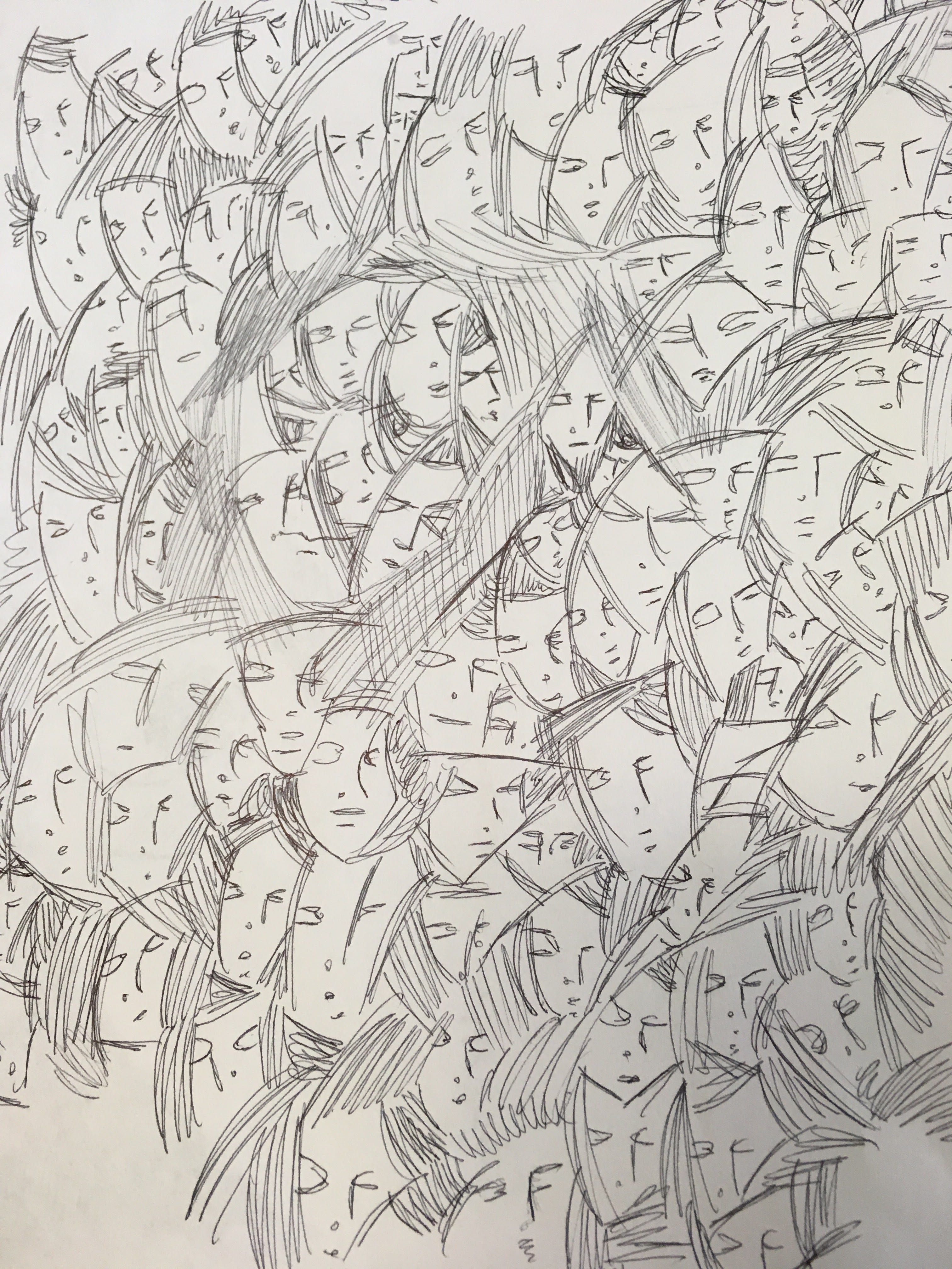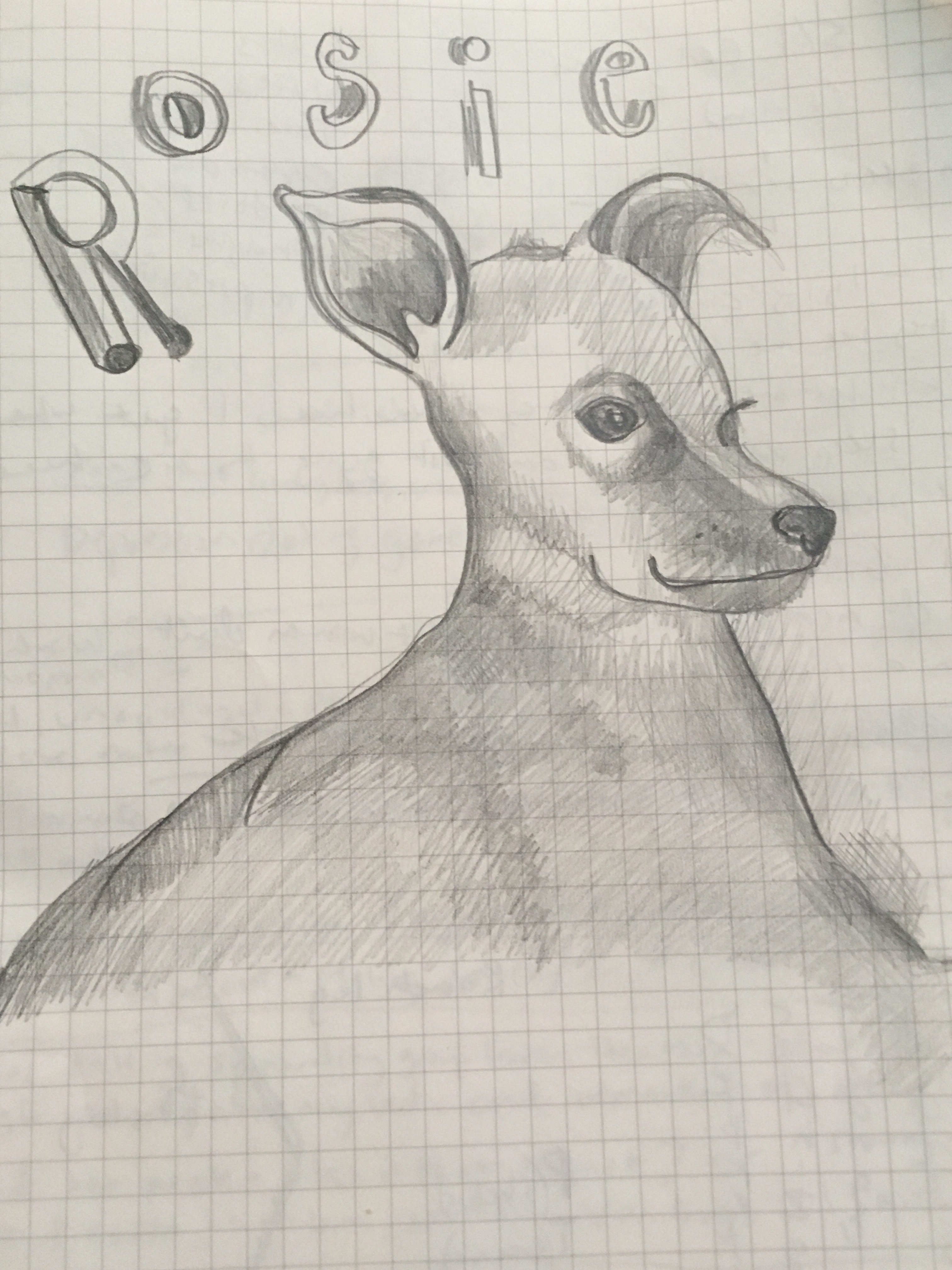 I couldn’t really summon up any words, so I drew a picture of Rosie, my dog, which I found strangely comforting, and these strange, repetitive face drawings that I do when my mind is not at ease.