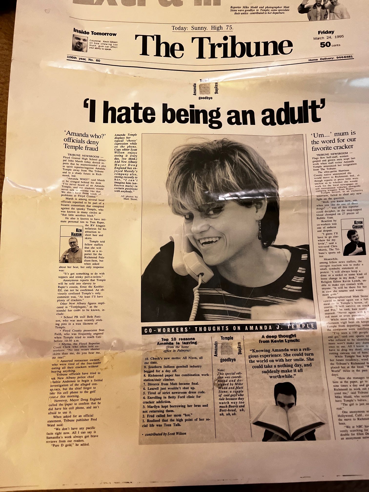 Assignment 3: Send me your story submissions! When I asked last time, within minutes I got this piece you are about to read. (Or at least I assume that’s why you’re here. Maybe you have other reasons you enjoy visiting websites that you don’t read. It’s all ok with me!) You can send me “It Happened To Me” stories or “Unpopular Opinion” rants or whatever else you are into sending. I am right here at Jane@AnotherJanePrattThing.com. There are also a bunch of you who have sent me submissions over the last months that I have acknowledged but haven’t given you final word on yet because I have questions or want to work with you more on them. So if you are one of those people, do not hesitate to forward me everything again so I can get it together. And if you just never heard back, definitely resend. There are a trillion reasons I could have just not gotten it. Especially now with Mercury. (Although, just to go off on one more tangent - and any book publishers reading this need to know that I will not write my book with THIS many annoying parentheticals, I promise - Mercury in retrograde has always been a time when my communication and business deals, etc, have gone the BEST! Ani is like that too. Anyone else?)