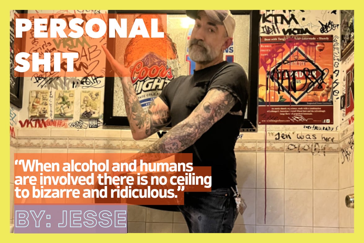 This is the inevitable question asked of me upon meeting new people in social settings. It’s like meeting a surgeon, you immediately want to ask what's the grossest thing he’s ever seen. And to answer the question, yes, I have seen some SHIT. The craziest thing is that the craziest thing that has ever happened at the bar hasn’t happened yet. You have to understand, when alcohol and humans are involved there is no ceiling to bizarre and ridiculous. Once a night I find myself, asking, out loud, “What in the Terry Funk just happened?!” There is no limit to jack-assery, stupidity, and general buffoonery. Especially when you add alcohol.
