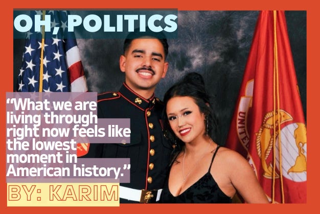 According to the DoD, one in four Marines is Hispanic or Latino, which means immigrant families like mine are deeply embedded in the Corps. So when this administration uses Marines for immigration enforcement or as a stage set for fearmongering, it’s not just a stunt—it’s a betrayal.