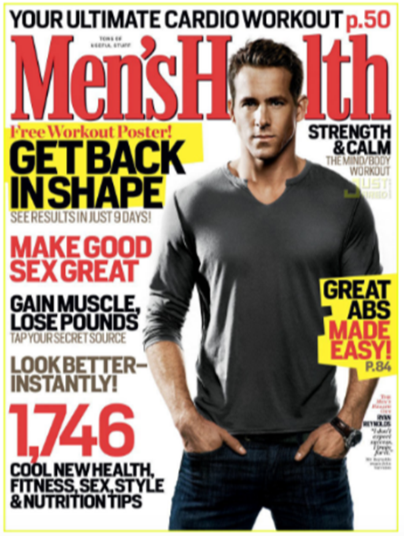 Here, for comparison, is a man on the cover of Men’s Health.
